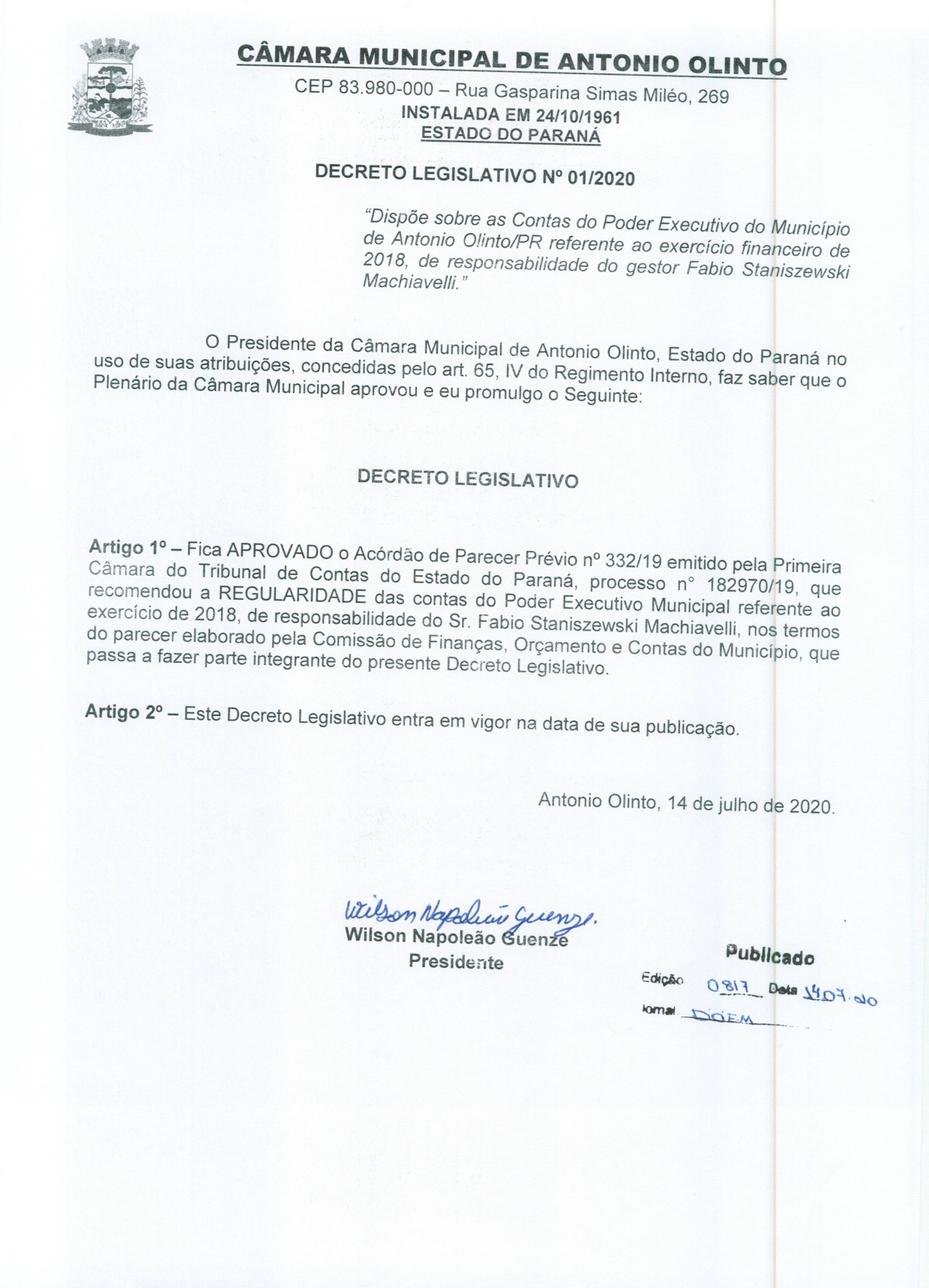 Câmara Municipal de Antonio Olinto