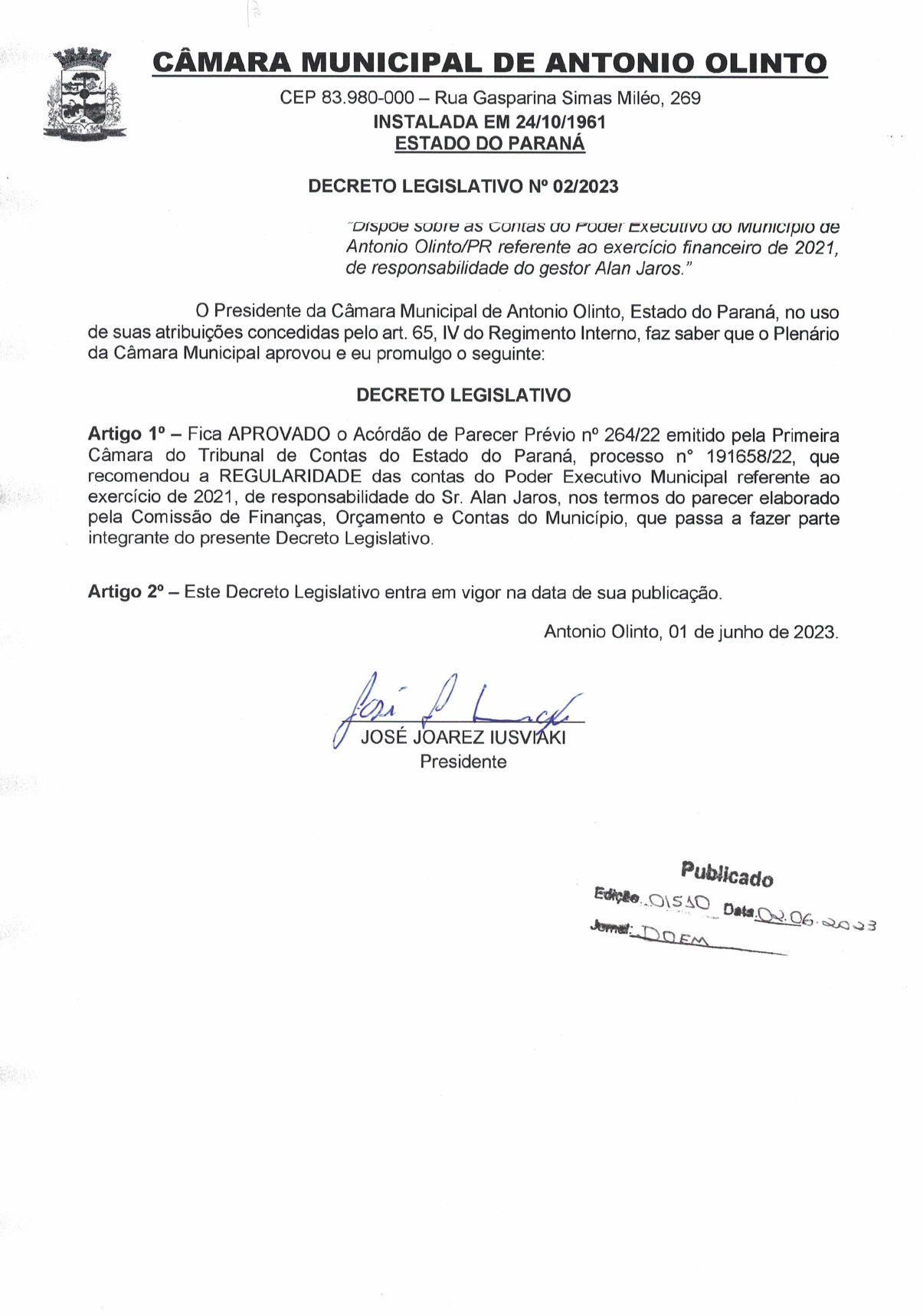 Câmara Municipal de Antonio Olinto - PR