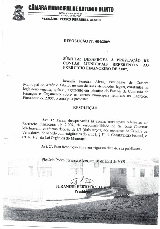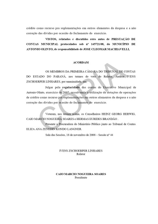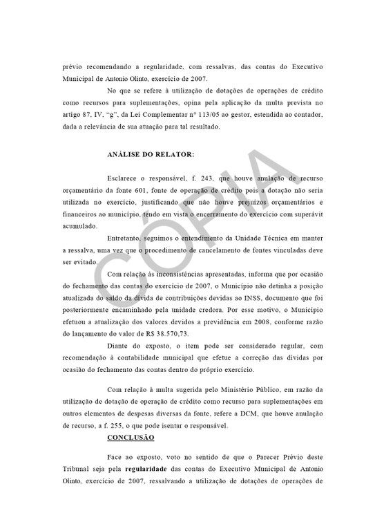 JULGAMENTO CONTAS PODER EXECUTIVO 2007
