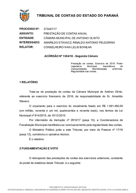 JULGAMENTO CONTAS PODER LEGISLATIVO 2016
